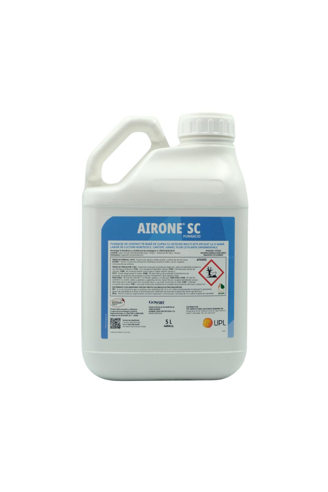 AIRONE SC este un fungicid de contact pe bază de cupru, cu acțiune multi-site, destinat protecției unui spectru larg de culturi horticole, cartof, sfeclă de zahăr, hamei, flori și plante ornamentale.
